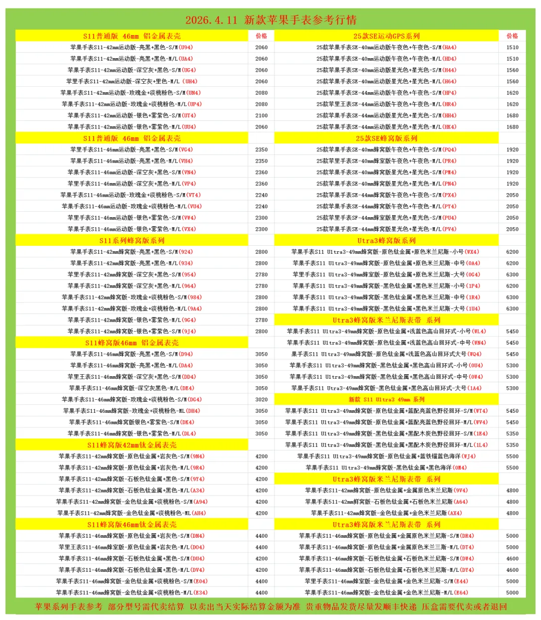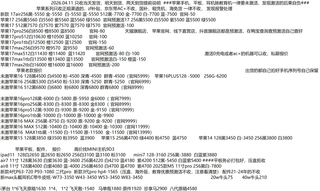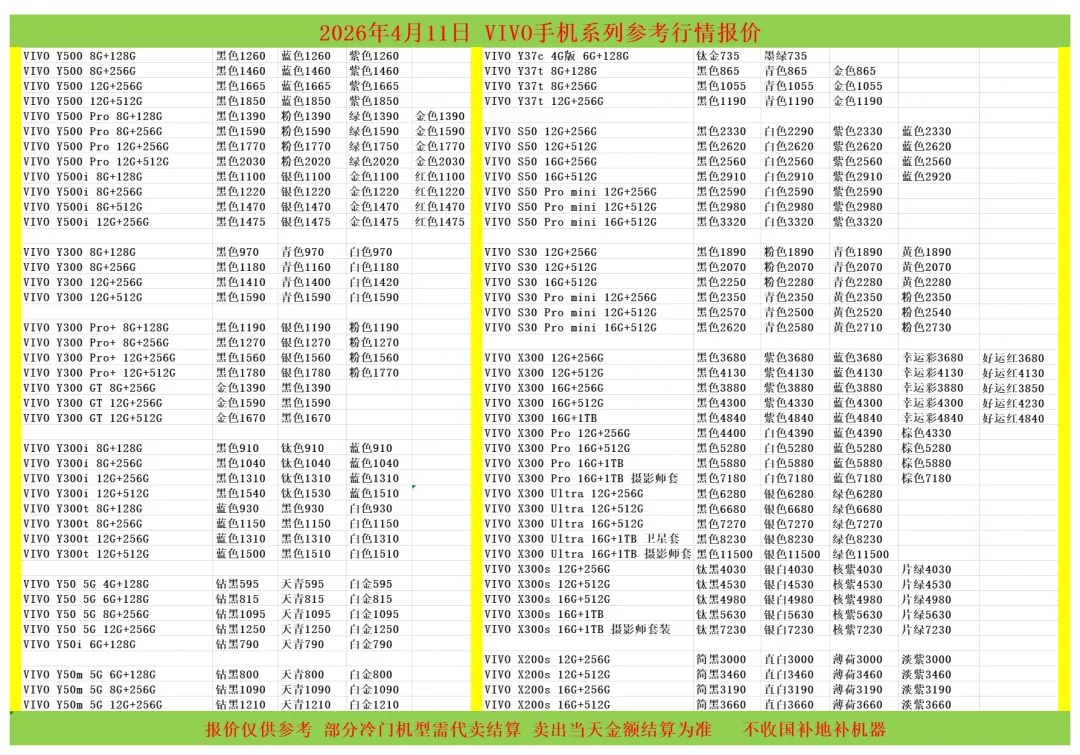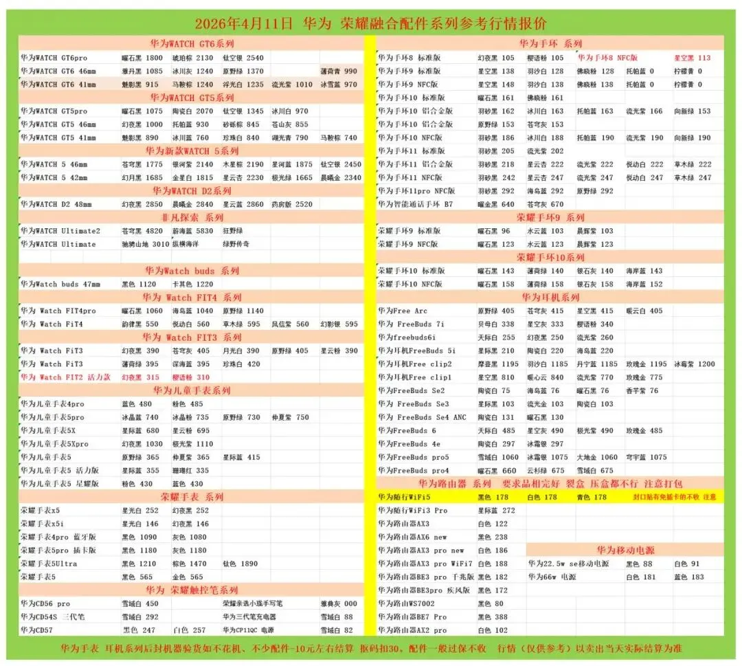 (1)二级市场为自由交易市场,价格实时波动,可能每个小时的卖价都不一样,此报价为华强北市场收货参考行情,实际结算价见公众号:鸟哥撸货数码结算价。