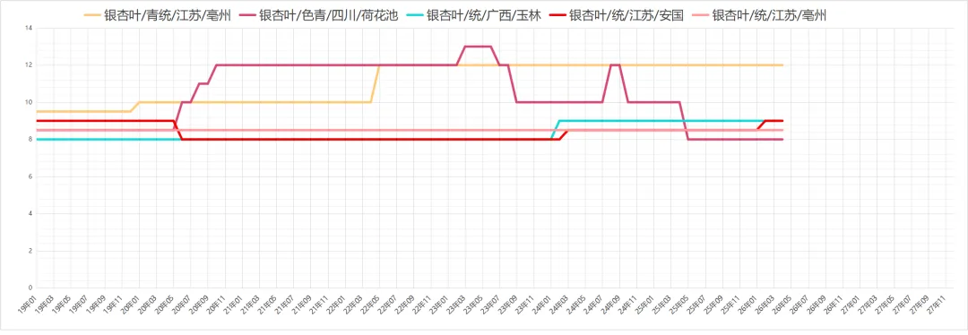 银杏叶行情保持平稳,尚有库存待售,近日有商寻货,货源走销多以小批量走动为主,现统货价格在8-9元,优质货价格在11-12元。