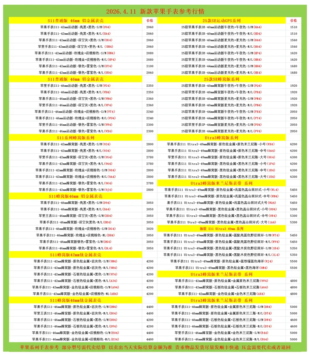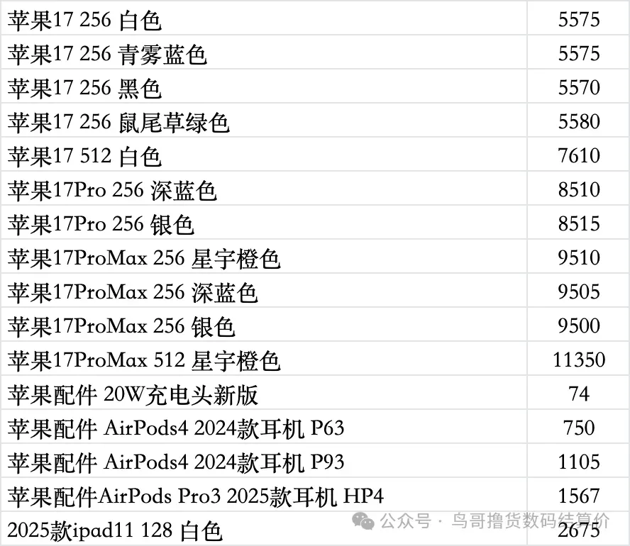| 鸟哥收货iphone/ipad/手表系列结算价(前一天的结算价) |