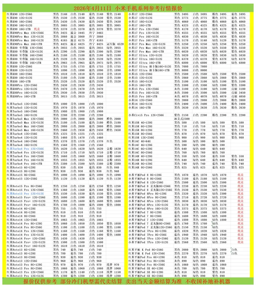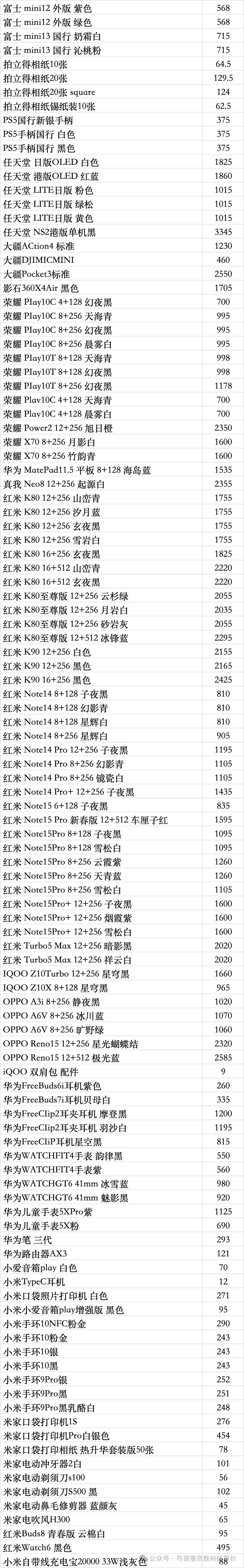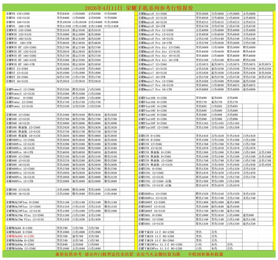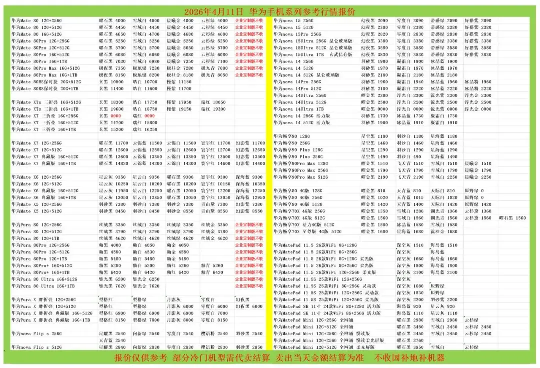 | 华为/荣耀/红米/小米参考报价 |