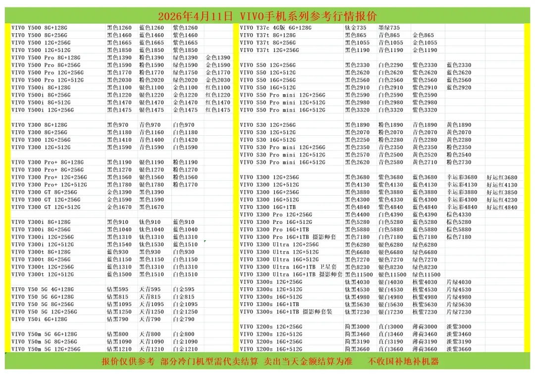 | 鸟哥收货华为/oppo/vivo系列结算价(前一天的结算价) |