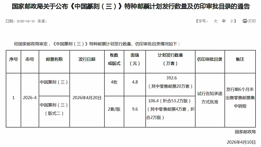 从丙午马票的历史性缩量,到《出圉图》的销毁定销,再到《中国篆刻(三)》的392万套极致控量,一套环环相扣、刀刃向内的改革组合拳,正彻底改写邮市生态,为长期健康发展筑牢根基。