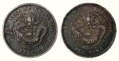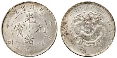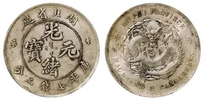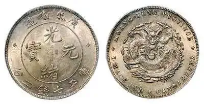 四大龙洋主要是发行量比价大的广东省造光绪元宝库平七钱二分,湖北省造光绪元宝库平七钱二分,北洋造光绪元宝库平七钱二分,江南省造光绪元宝库平七钱二分。广东省造光绪元宝壹圆银币成交价:RMB 14,950