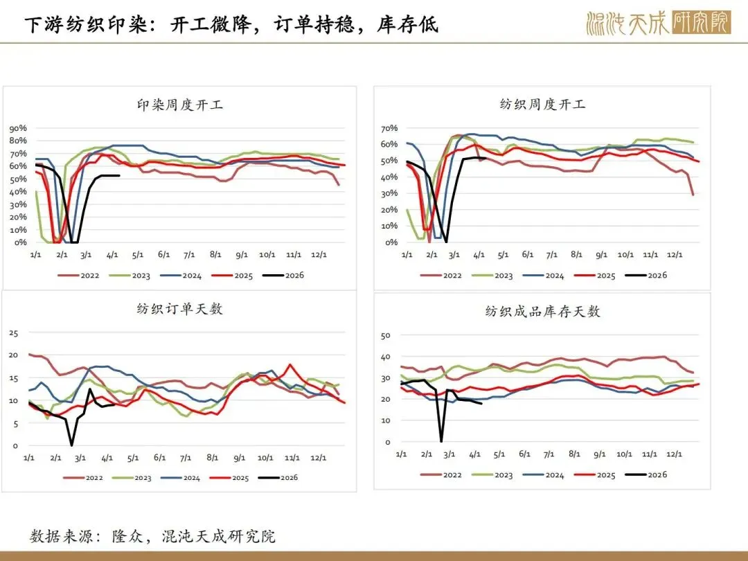 3、需求有受高价抑制,但暂无明显负反馈。下游开工持稳、订单持稳、库存上升;终端原料及成品库存极低。若局势稳定后,关注需求修复+补库情况。