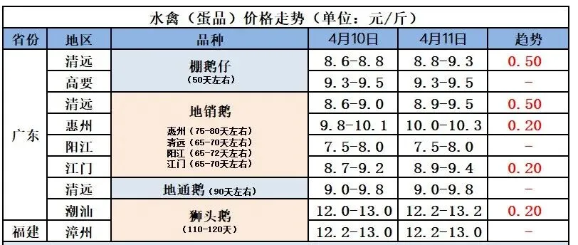 备注: 1、报价为樱桃谷父母代大苗的报价; 2、报价仅供参考,实际成交或受多因素影响有不同; |