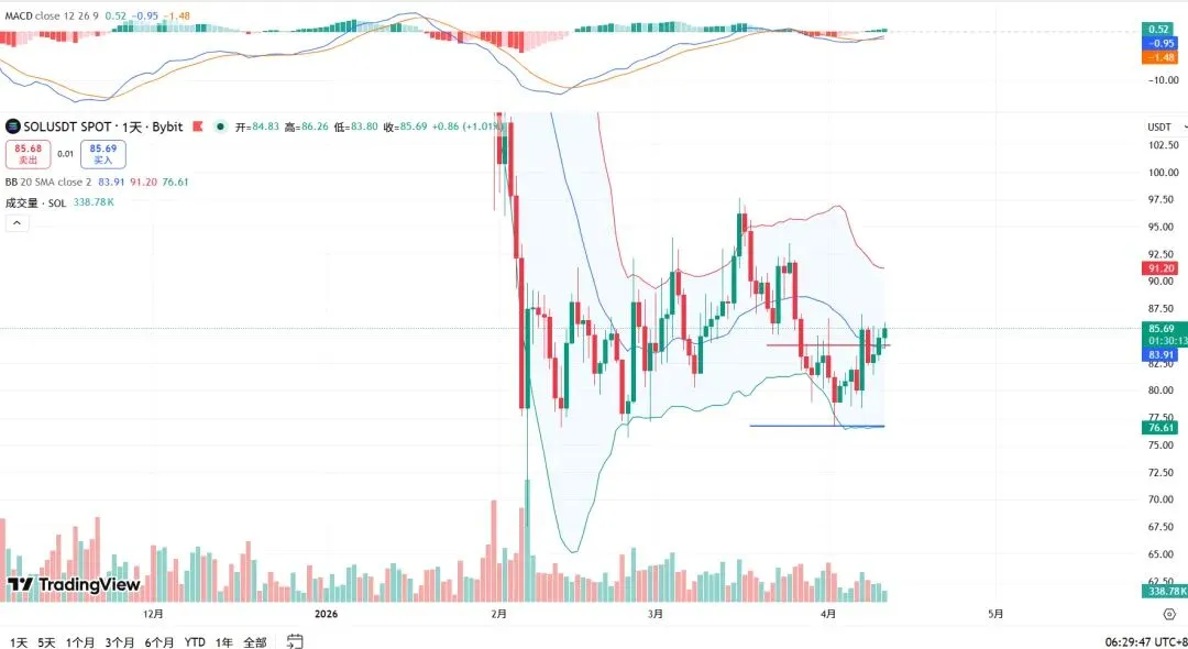 SOL 价格:85.37USDT