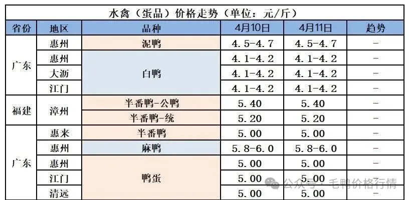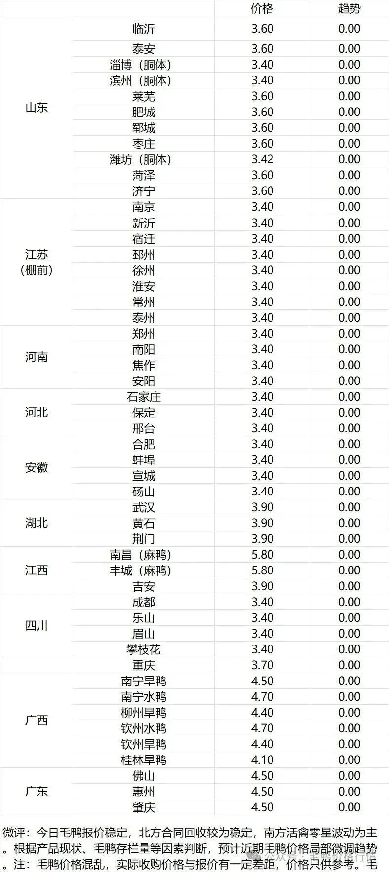 2026年4月12日毛鸭价格行情:(单位:元/斤)