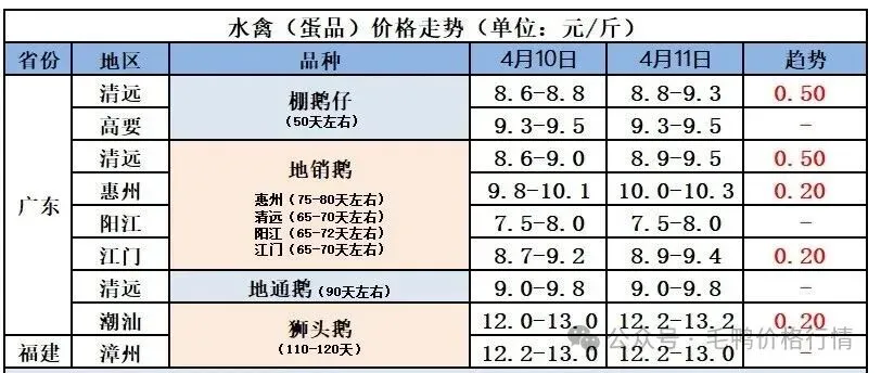 4月11日南方桂柳广东区域毛鸭报价(元/斤) |