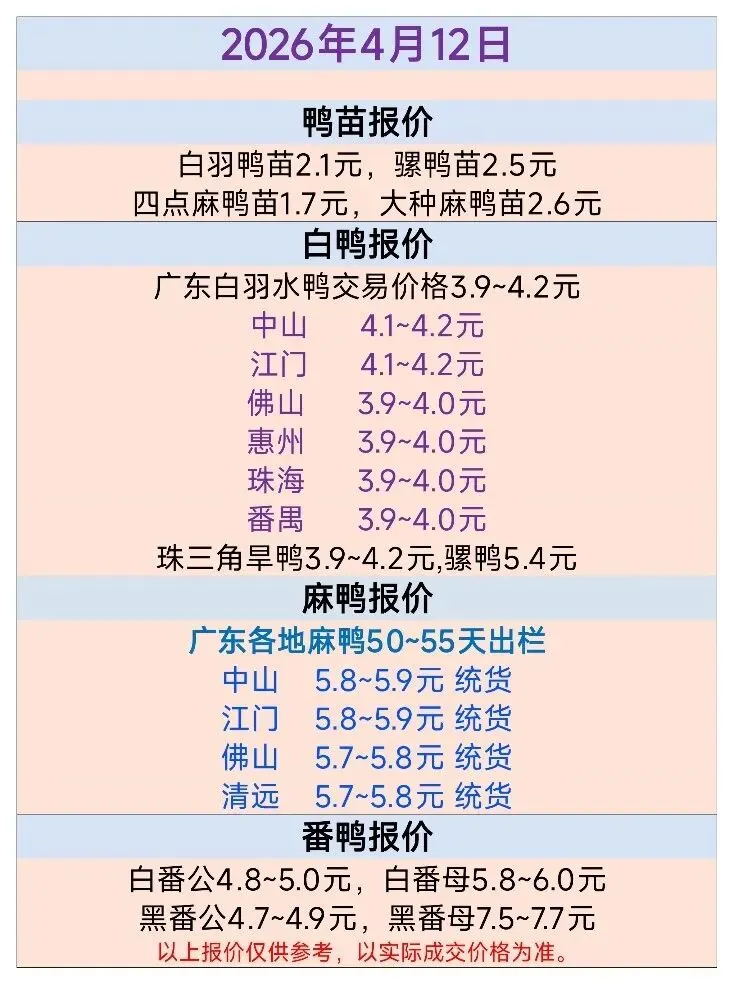 >2026年4月12日广东毛鸭行情