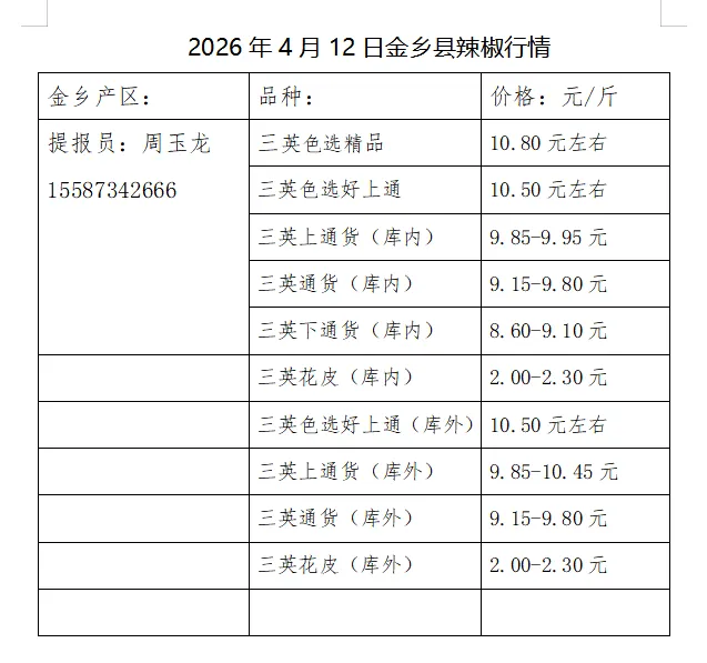 2026年4月12日金乡县辣椒行情