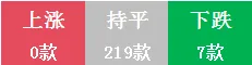 今天上涨有0款,下跌7款,与昨日行情相比总体下跌。