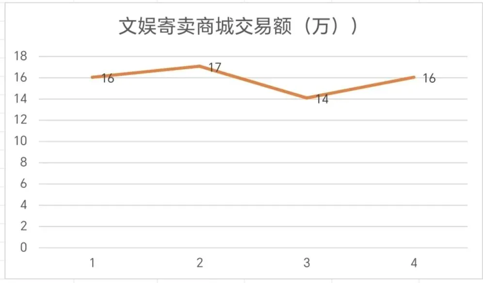 文娱寄卖商城本周交易额63万,上周75万,下降12万,日均成交额15.75万。