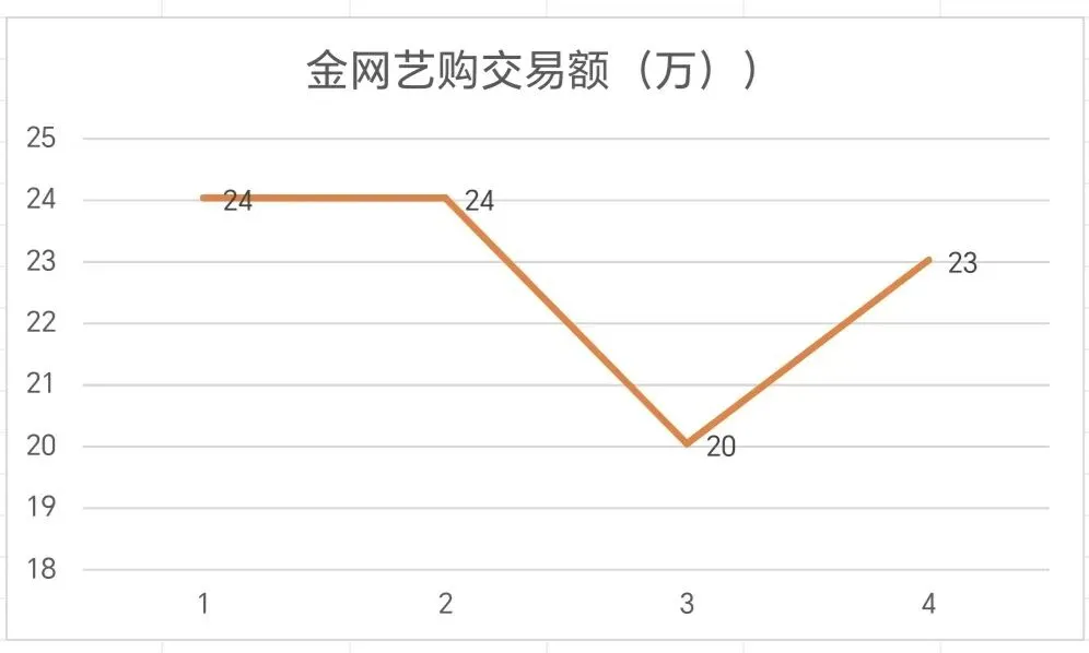 金网艺购本周交易额91万,上周300万,下降209万,日均成交额22.75万。