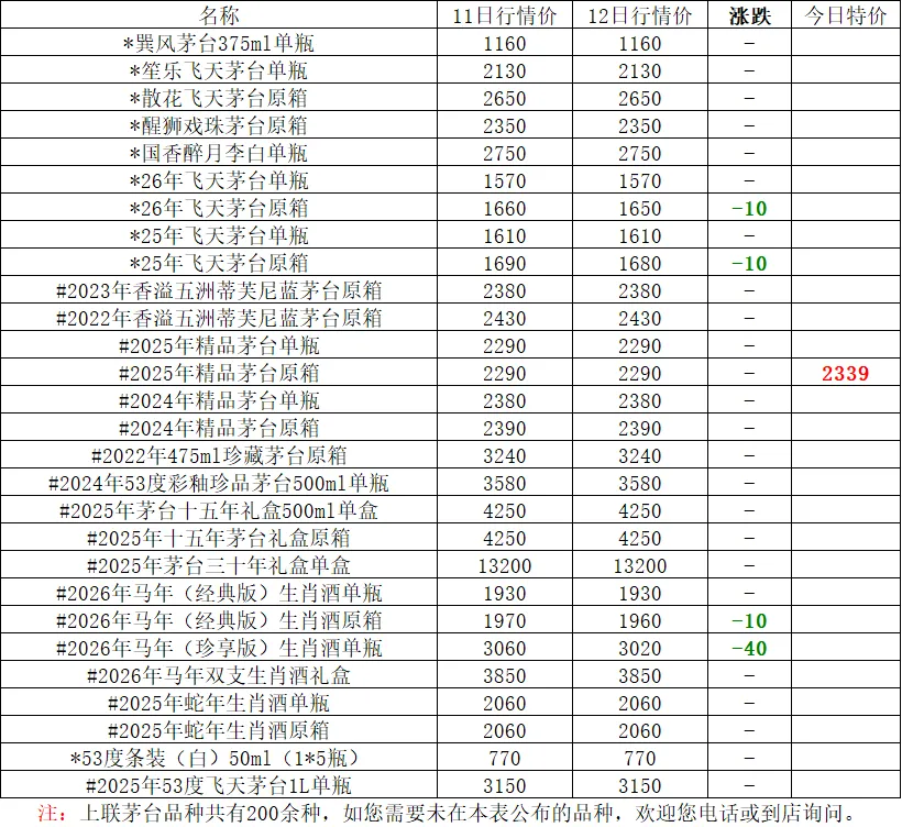 上联茅台酒价格行情发布4月12日