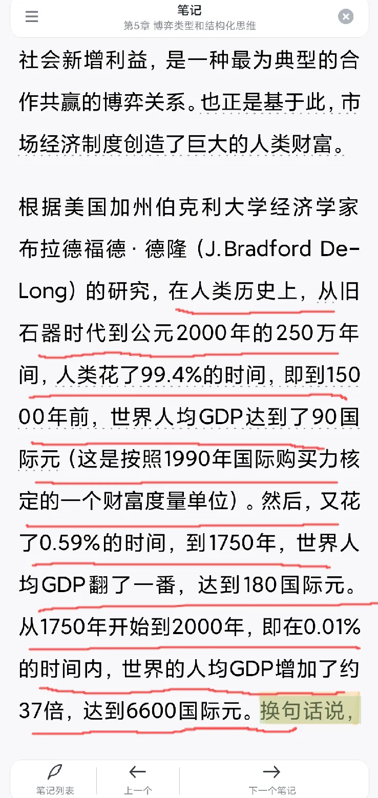 人类97%的财富,是在过去250年,也就是0.01%的时间里创造的。剩下的99.4%的时间,世界人均GDP几乎没怎么涨。