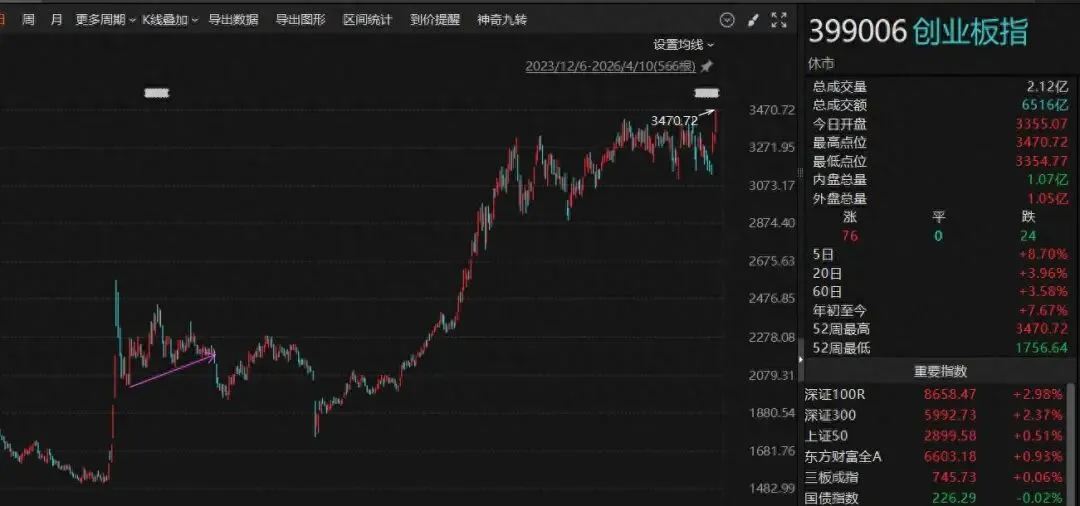 综合以上分析,创业板此次创下4年多新高,更多是海外情绪回暖、机构抱团拉抬权重股的阶段性表现,而非新一轮趋势性牛市的开启。周线顶背离的技术警示信号、权重股独撑的失衡结构、存量博弈下的脆弱资金面,共同指向了新高不宜盲目乐观,甚至还需留意可能的阶段冲顶的风险。
