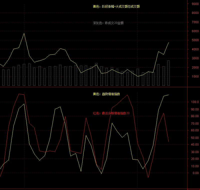 反面,以涨停情绪的最近多板与昨成交20形成剪刀差,这就说明盘面是以趋势大成交额为主的风格回归。
