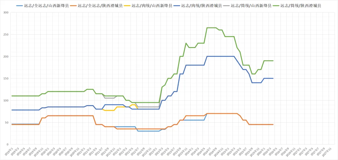 近期寻货商家不多,虽有交易进行,多为商家按需购买,行情暂无明显变化,现远志筒统装货交易价在180元左右,直径2-4mm的货售价210-215元,3-5mm的货售价250-260元。
