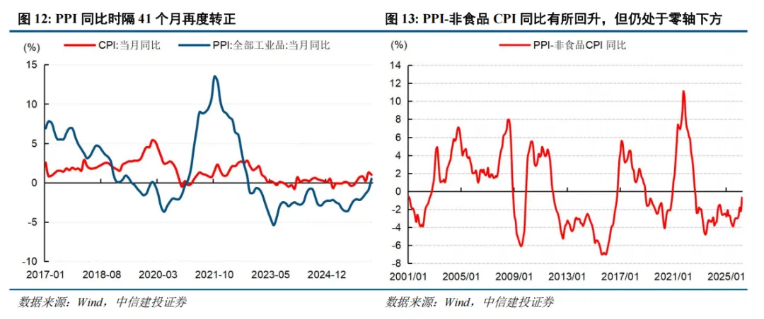 最新公布的3月通胀统计数据验证了通胀可喜的回升,3月CPI同比虽然略有回落,但连续两个月保持1%以上,是2023年2月以来首次;3月PPI同比也在油价的助推下时隔41个月再度转正,这是宏观经济的重要分水岭(PPI环比此前已连续8个月达到零轴或以上水平)。标志着市场此前一直担忧的通缩已经不再是问题,尽管不是最好的内需回升拉动物价的情形,但外部冲击和外需拉动也同样有利于国内过剩产能的消化,缓释内需不足的问题。