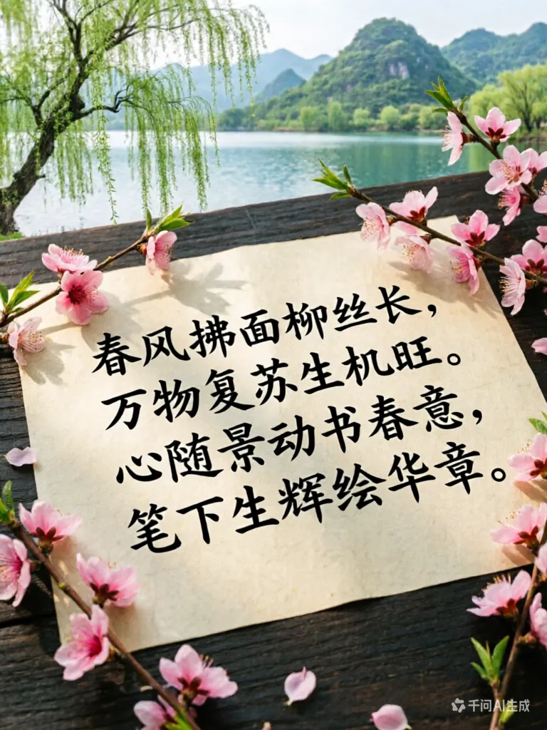 阳光斜斜地淌进教室,落在黑板中央的电子屏上。屏幕亮着,一行字静静浮出:“写给春天的一封信”。窗外风轻,柳枝刚染新绿,像谁不经意间在天空写下的一笔行书。