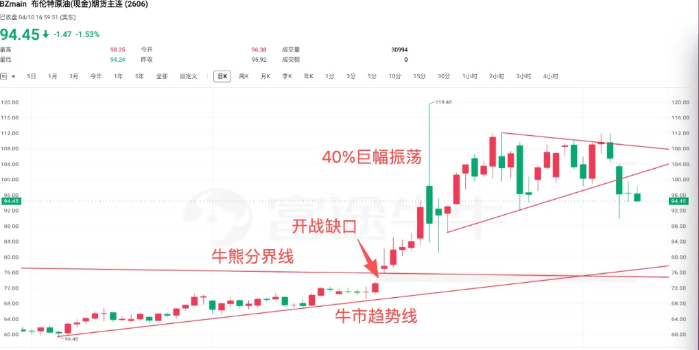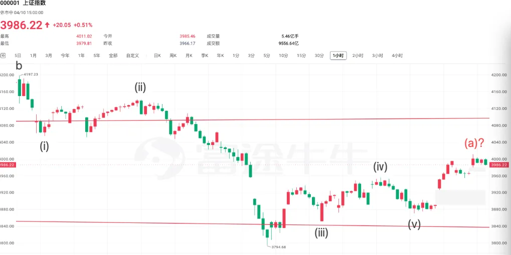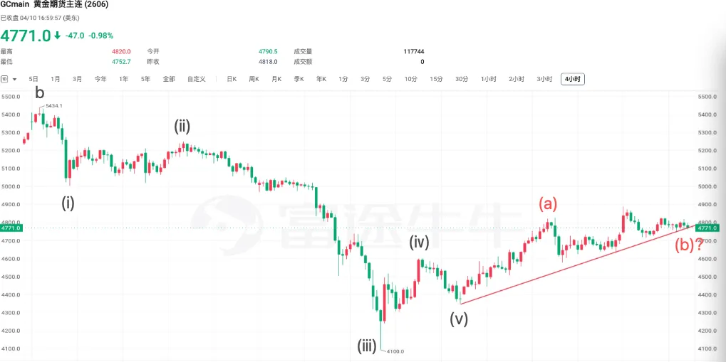 周三的高开高走百点长阳,一举发出了其性质为中级反弹的波段性多头行情确认信号,但这个交易周短线该进入反弹初段的反复振荡调整阶段了一、历史上的今天,是个重要转折纪念日,本期文科热场小作文,就来聊聊这个故事99年前的“412”,两大革命党之GUO党开始清党,驱逐GONG党成员,在上海捉捕工人纠察队,GONG史称“412反革命政变”事件的背景是“联俄联共扶助工农”政策下的第一次国共合作,GONG党人以个人身份加入GUO党,北大教授陈学长就当过教育部长,毛教员还当过宣传部长事件的起因一是共产国际支援的GONG党在上海组织自己的独立武装——工人纠察队,当时GUO党才刚有以黄埔军校学员为核心并逐步收编各路军阀武装进行北伐的武装;二是北伐的中低级军官中地主富农家庭出身较多,前线在北伐,家乡却在打土豪分田地搞“土改”,动摇了军心后来GONG党被逼无奈几个月后在南昌武装暴动,此乃后话这一事件是国共顶层人物之间闹掰决裂百年的底火儿,毕竟当时GUO党顶层换人换想法了,双方顶层都热衷于闹革命,没有暴力思想不现实,直到现在,顶层历经几代不断换人后,幸好又赶上丽文小姐姐再次率团前来破冰,而GUO党早已下台几个来回成为在野党,可以不必再担心会亡党了这故事和股市有关吗?当然有,每年此时此刻,经常发生变盘则是大概率事件,本刊股评老友夏炎老师今日发文提到,周一(4月13日)是今年以来的循环周期时间窗口,同时又是费氏周期55和13个交易日的重叠日,此拐点意味着沪指将出现至少是对3794以来的调整,而本刊认为最大概率是3-5个交易日的微型调整而已4月7日周二,国内主力资金净流出近140亿;北向资金休市;主要净流入方向:基础化工、建筑装饰和公用事业(电力);主要净流出方向:电力设备成为重灾区、通信、计算机和医药生物4月8日周三,国内主力资金大幅净流入530余亿,创逾十年新高;北向资金流向不明;主要净流入方向:高度集中涌入科技板块,电子、通信和有色金属;主要净流出方向:医药生物、石油石化和煤炭4月9日周四,国内主力资金净流出345亿;北向资金流向不明;主要净流入方向:石油石化和建筑材料;主要净流出方向:电力设备、传媒、计算机和医药生物4月10日周五,国内主力资金小幅净流入131.5亿;北向资金流向不明;主要净流入方向:电力设备和非银金融(券商);主要净流出方向:通信、有色金属和农林牧渔【解析】周三国内主力资金大幅净流入530余亿,是个标志性流向,据本刊观察范围,为自去年8月份8个多月以来单日净流入之最,一般单日流入最多也就100-200亿,而AI的大数据统计则是创逾十年新高!三、全球股市红色星期三,沪指也发出中级反弹确认信号|A股市场技术分析周三受宣布停火10天(后改为两周)的消息刺激,全球股市迎来红色星期三,以A50为代表的A股大势自然也不会例外,虽然还未突破上图扩大三角形顶边线,但中级反弹的怀疑信号早已于上图(v)e点和之后的次低点领先出现周三宣布停火10天(后改为两周)的消息,使全球股市迎来了红色星期三,对于沪指而言,一举冲过上图(ⅳ)点,直接发出了中级反弹确认信号之所以是确认信号,上图将上段整段中级调整中c浪完整展现出来,通过近三周的跟踪监测,本刊认为c浪的内部结构如上图,结束点在(ⅴ)?点,确认为失败(ⅴ)浪,至此,c浪内部结构细节在盘中、微细浪和微型浪级别中都走出了失败ⅴ浪在上周监测过程中,本刊还在认为正常情况下会回到3800左右构成双底,是因为从当时认为的(ⅴ)ⅰ微细浪的规模与时间周期看,基本估计到双底结构,当然还有两种非正常情况,一是很多机构估计的3700(那就是延伸浪了),二就是现在的失败浪既然是中级反弹,时间周期需要2-3个月,高度有好中差三个目标:好则可再创新高到达4200左右,因为4190-3794的中级调整只有3浪,理论上允许(b)浪创新高;中则在4100-4170之间,因为4170以上有重压,不仅是散户套牢盘,北向、游资、基金等都有;差则在4050以下,与前面4034构成双肩的双头肩顶本周末网上有很多财经自媒体博主还认为在第(ⅳ)浪,下周进入第(ⅴ)浪,甚至还有干脆就看b浪结束下周进入恐怖c的,本刊认为他们或者对波浪理论一知半解,或者没有从细节进行跟踪监测但反弹初段过程中会出现反复振荡调整,其中也经常会出现中小型利多利空消息,本刊也可以撂这一句话,两个月内不会出现特别重大利多或利空,这是中级反弹的框架和格局决定的作为对这个交易周的预测,本刊认为该进入反弹初段的反复振荡调整阶段了,是为(b)微型浪四、美伊谈崩符合预期,对原油利多|金银也进入波段性多头行情|全球主要资本市场技术分析就在本刊发稿之前不长时间,美伊伊斯兰堡谈判结束,用媒体的话说就是“双方分歧巨大,无果而终”,有的媒体干脆就用“谈崩了”,这是符合市场预期的,两家根本就不在一个频道,怎么可能尿到一壶里呢?但我们所关心的一切,都要聚焦到霍尔木兹海峡开与关,现在看来,需要回到原来状态,无论10天还是两周的停战也就到此失效了。对于原油行情来说,这是个利多消息,但对于股市来说,这可是利空消息,至少在现阶段如此对于原油行情走势来说,上周所说的三角形走势(虽然还有两次向上假突破)也就被破坏了,或者说是根本就不成立,幸亏不成立,否则一旦冲到150美元/桶,将会引发全球性石油危机,经济动荡,股市崩盘,应该说是懂王力挽狂澜,当然也就在其宣布之前,