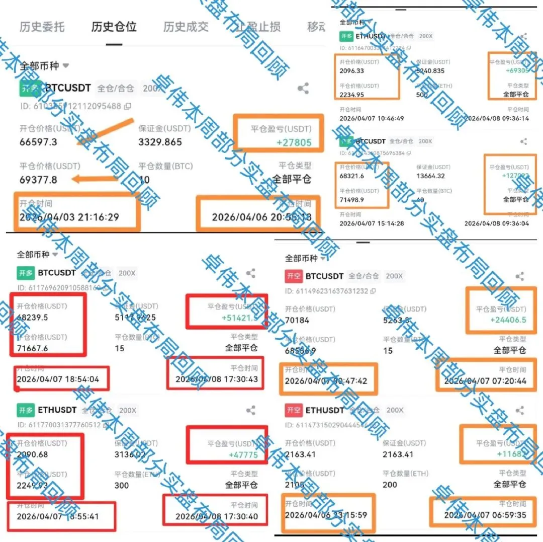 周三第二轮上涨如期而至,周二埋伏多单,大饼在68000附近进多早间一轮,午后一轮。两连胜斩获6600点空间,以太同步跟进斩获297点空间。