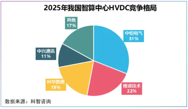 公开数据显示,2025年,中恒电气以31%的市占率拔得我国智算中心HVDC市场头筹,紧跟其后的是维谛技术(22%)。