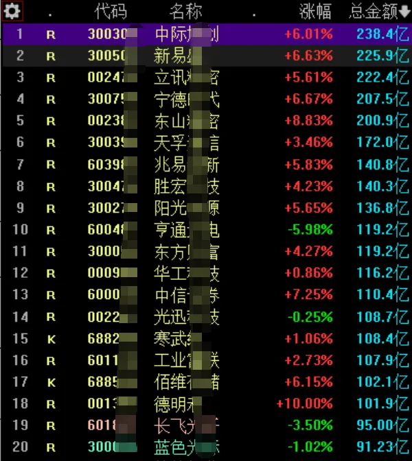 周五百亿成交的个股多达18个,大部分还都是红盘的
