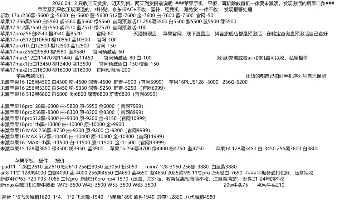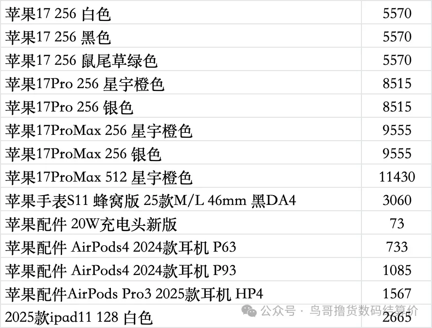 | 鸟哥收货iphone/ipad/手表系列结算价(前一天的结算价) |