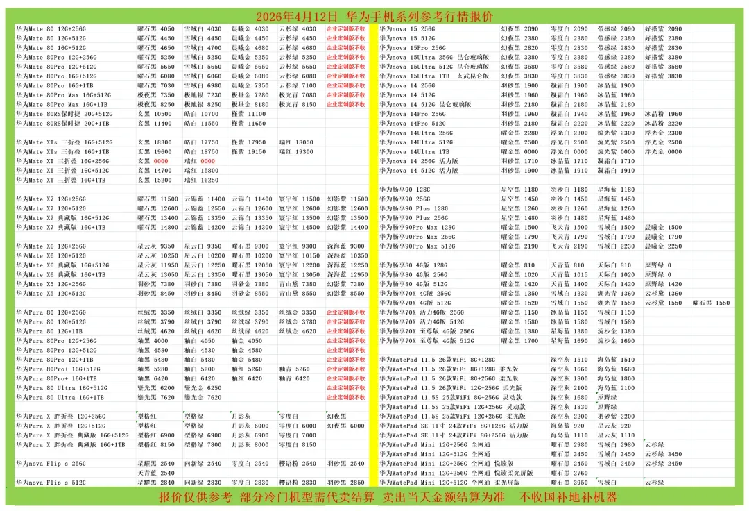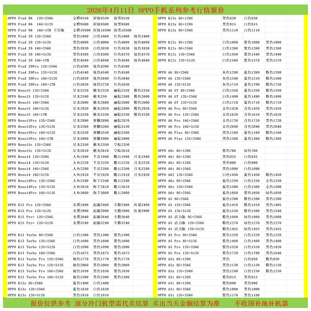 | 鸟哥收货华为/oppo/vivo系列结算价(前一天的结算价) |