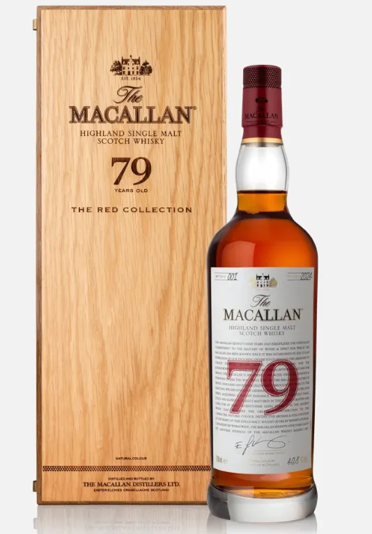 2026 年 4 月 7 日,麦卡伦发布耀红系列 79 年单一麦芽威士忌,由制酒大师 Euan Kennedy 打造,在雪莉风味桶熟成,2024 年装瓶,酒龄 79 年,酒精度 40.8% ABV,700ml,无色素添加。作为麦卡伦耀红珍藏系列酒龄最高酒款,官方售价 7.75 万英镑(约合70.4 万元人民币)。