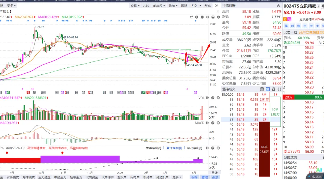 涨停回踩之后 ,已经走出了高度 ,所以接下来留意 5月 苹果发布会 以及华为的发布会 ,相关概念方向 AI眼镜、折叠屏、AI手机 等等 ,2、“养龙虾”对于Token的需求 ,继续利好数据中心 以及算力租赁方向55、稳定币