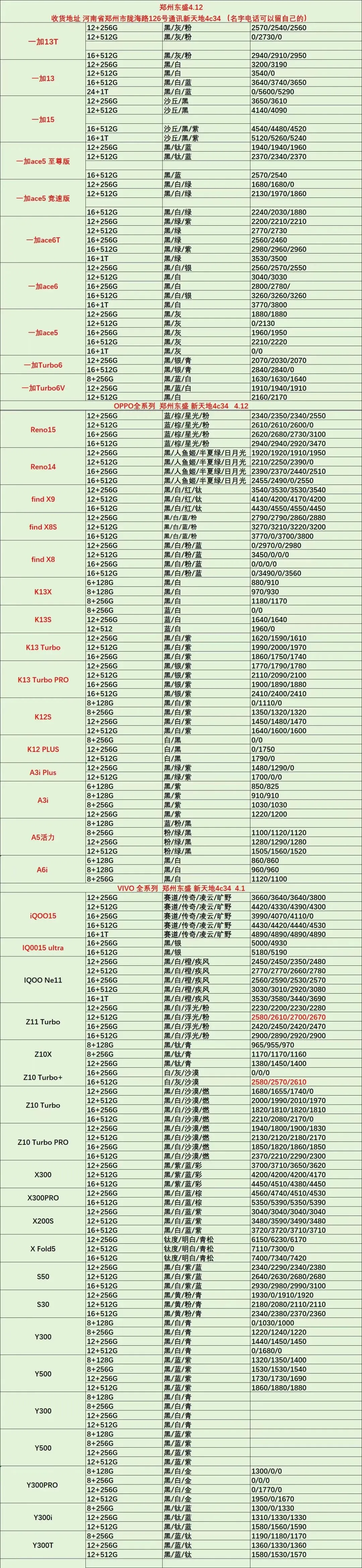 今日手机行情4月12日-最新手机价格表查询 vivo iqoo 手机 平板系列产品批发参考价