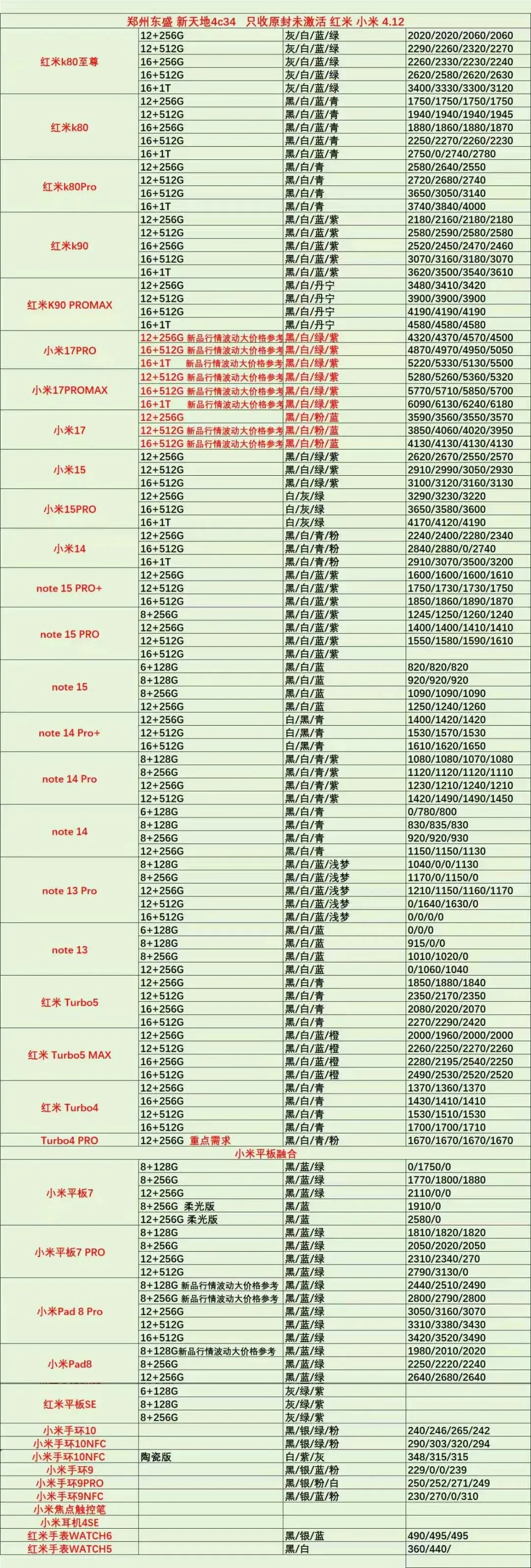 今日手机行情4月12日-最新手机价格表查询 小米 红米手机 平板 穿戴 智能家居 生态链系列产品批发参考价