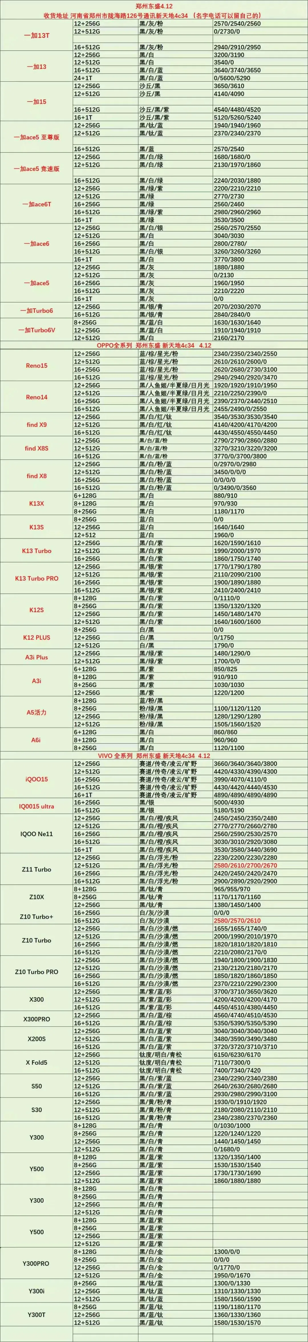 今日手机行情4月12日-最新手机价格表查询苹果手机回落 各大品牌手机批发参考价