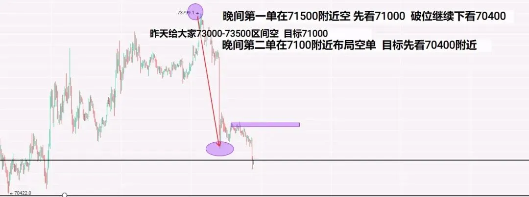 周一凌晨大饼:71500附近布局空单 目标关注70000
