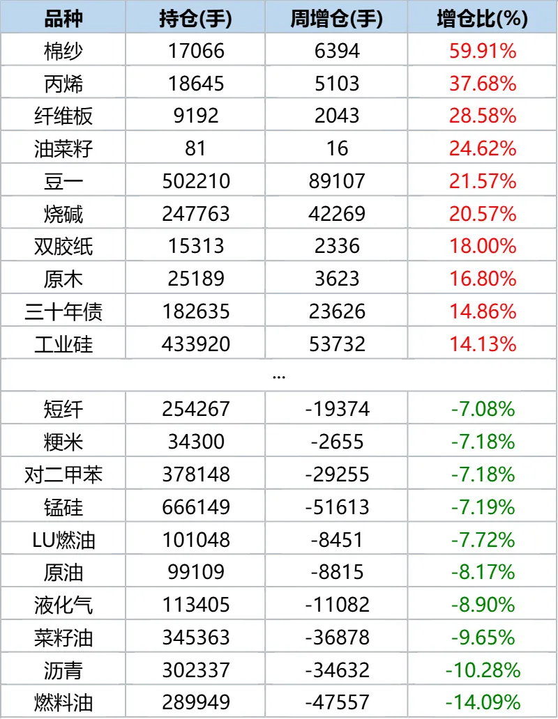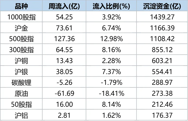 每周统计,包括沉淀资金、涨幅、增仓比、期现比、价格水位五个排名表,根据周五的最新数据做统计;每周一发布,遇节假日顺延。