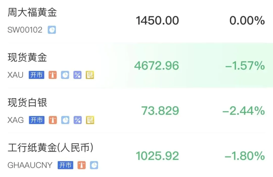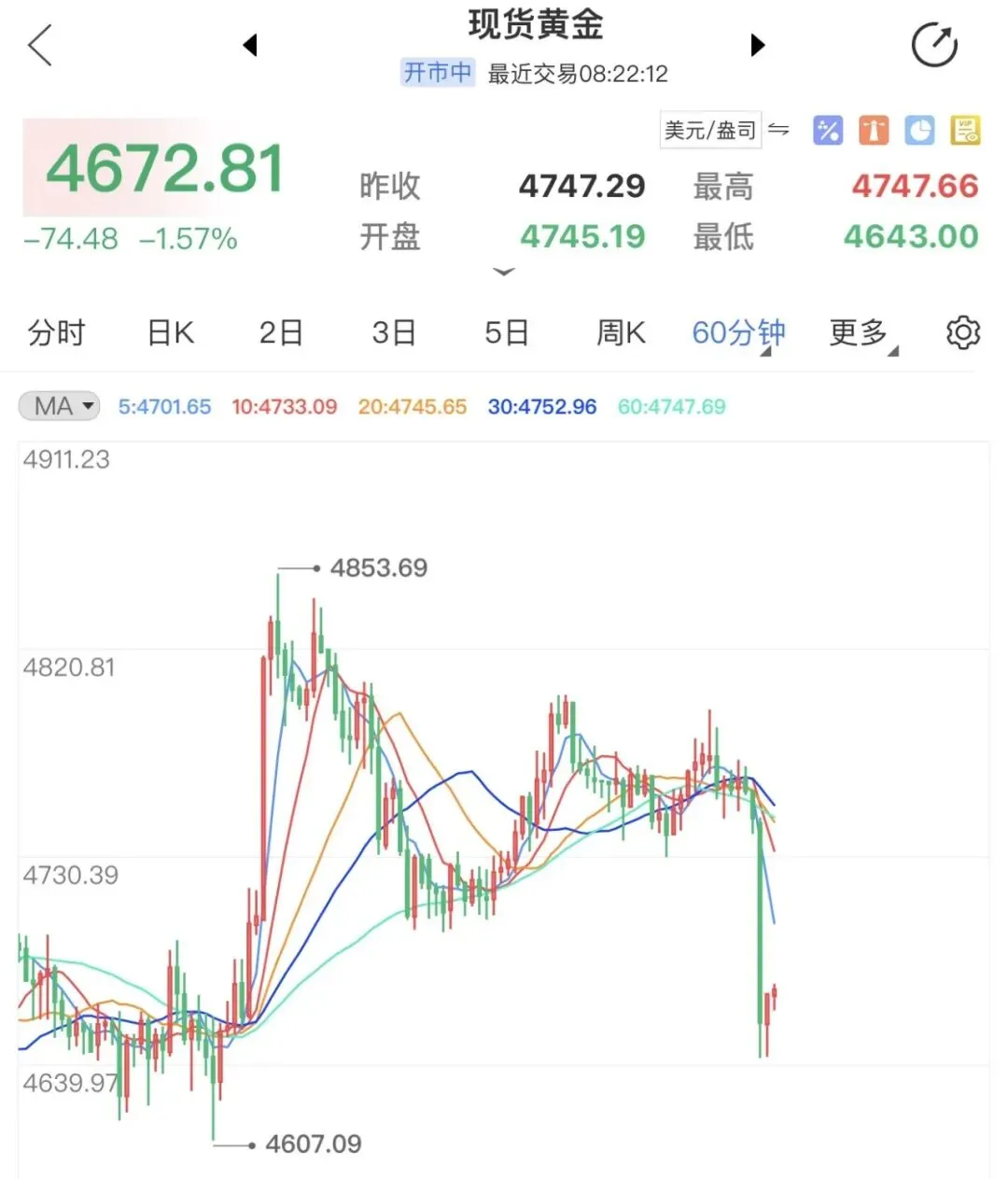 现阶段现货黄金报价4670,短期走势偏弱,存在跌破4600、下探4500的可能,看向4000区间的风险持续增加。内盘黄金同样承压,大概率跌破1020、1010,甚至失守千点关口。