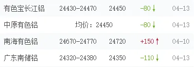 跌!今日铝价行情!铝锭现货价格(2026.4.13周一)