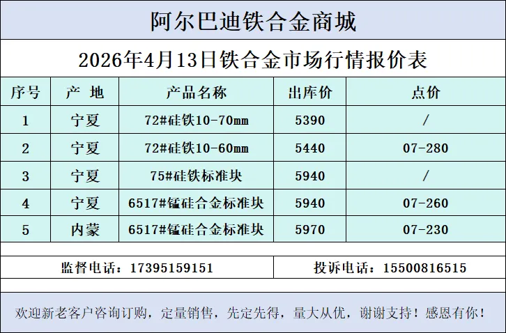 2026年4月13日 硅铁·硅锰 期现行情简表