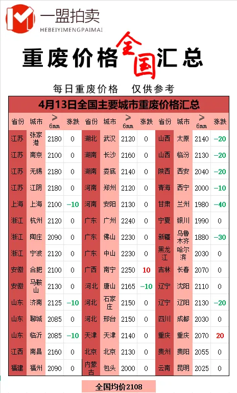 跌!今日铝价行情!铝锭现货价格(2026.4.13周一)