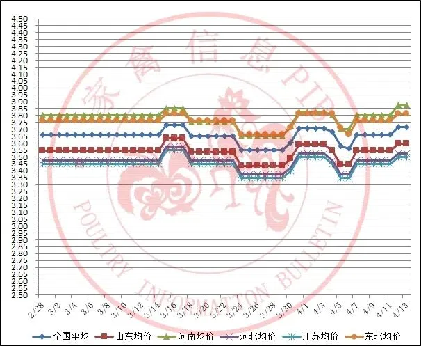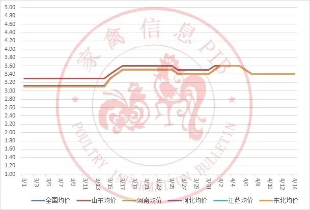 2026年3月1日-2026年4月14日主流地区白羽鸡鸡苗均价走势图