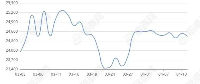 2026年04月13日长江有色金属现货交易行情 价24450涨跌-90,最低24430,最高24470,前三日均价24500,前五日均价24498。仅供参考,风险自担。