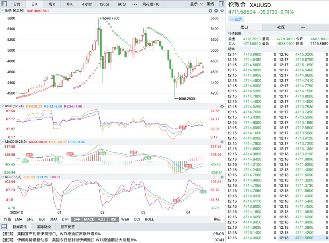 第二,技术性抛盘+程序化交易放大了跌幅。4795是前期关键压力位,大量投资者在这里挂了止盈单,一旦涨不动,止盈单集中砸出,价格就会快速下跌。而价格一跌,大量程序化交易的止损单被触发,多单止损自动成交,进一步砸低价格,形成了“下跌-触发止损-更下跌”的恶性循环,短短几个小时就砸出300多点的跌幅,这就是为什么行情跌得这么快、这么狠。