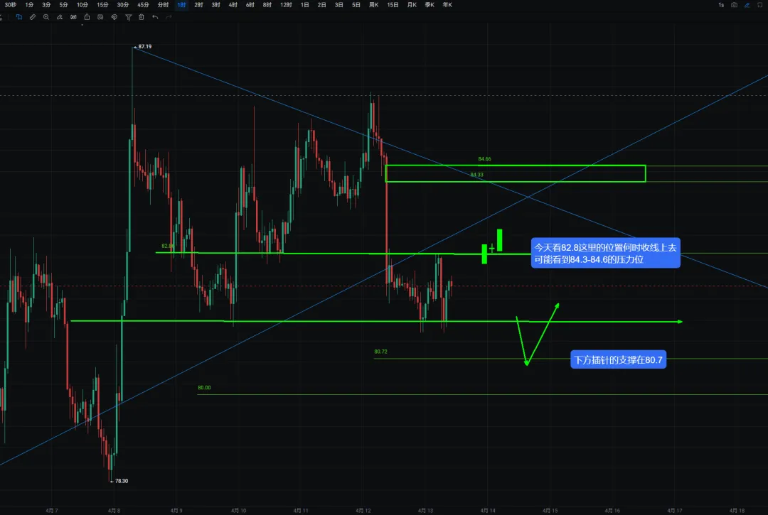 $SOL 索子关注82.8这个位置1小时上何时收线上去完成支阻互换后,可能继续上看到84.3-84.6的压力位。下方关注80.7-80是否会获取流动性反弹。