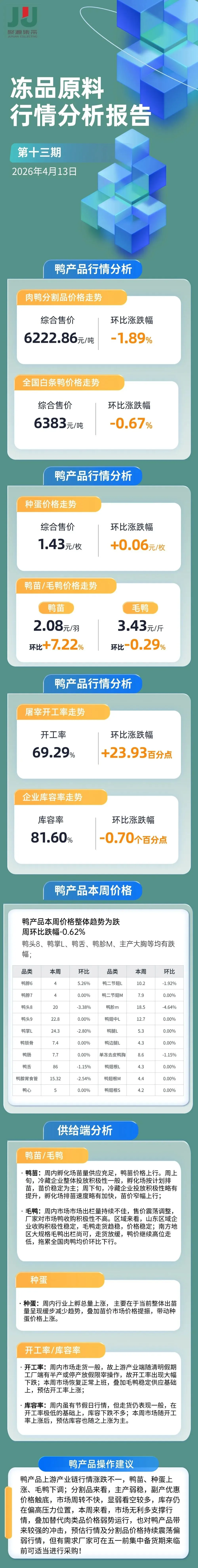 >第十三期冻品原料(鸭鸡猪牛)行情走势分析报告(2026)