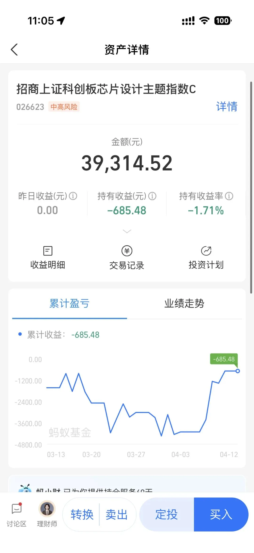 总结:短期内科创芯片板块已经产生了一定涨幅,茉莉个人暂时不考虑追了,今天如果涨幅保持在2个点以上就回本浮盈了,会考虑趁机落袋一波。长线来看,科创芯片还是震荡上行走势,属于景气主线,短期注意高位波动,不盲目追高了。