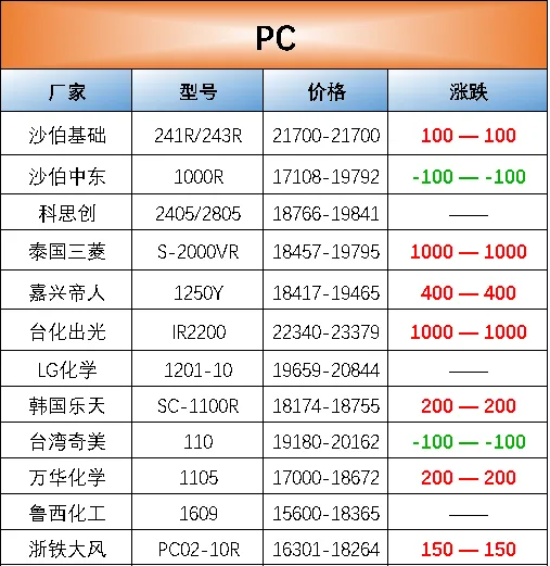 全线上涨!ABS市场均涨2500元/吨;PC市场大幅上涨,最高涨幅达4000元/吨;PA66、PC/ABS、POM和PMMA均有不同程度的上涨。