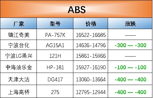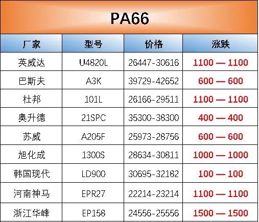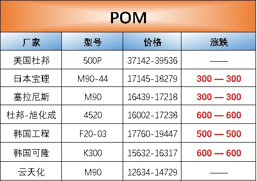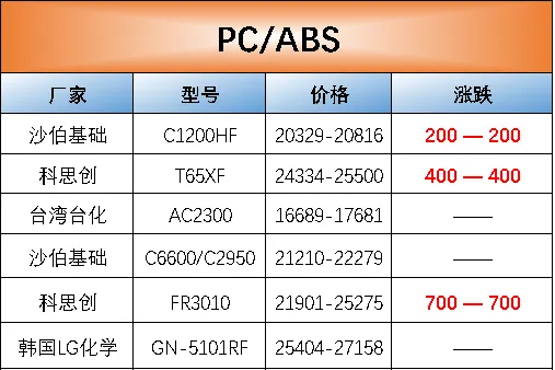 继续全线上涨!ABS市场均涨700元/吨;PA66市场均涨1000元/吨;PC和POM市场整体上涨;PC/ABS和PMMA部分上涨!