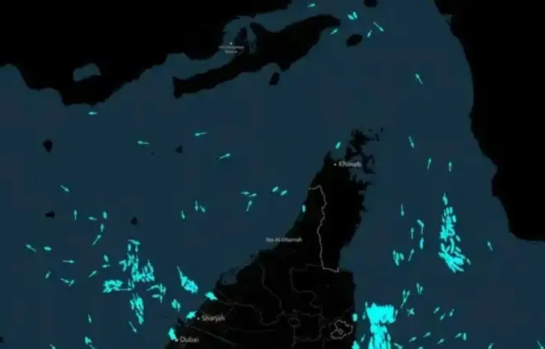 霍尔木兹海峡船舶 AIS 分布图。